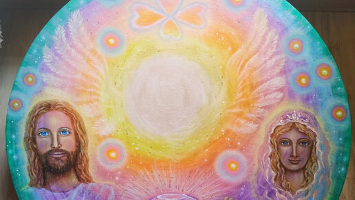 Картина маслом " Радужное сияние Божественной Любви " Мироздание Мир. Иисус Христос. Вера. Ангел Хранитель. Архангел Михаил.