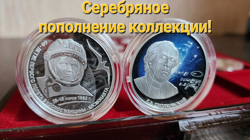 Новинка 2023 Терешкова и старинка 2021 Циолковский. Серебряные монеты России серии "Космос".
