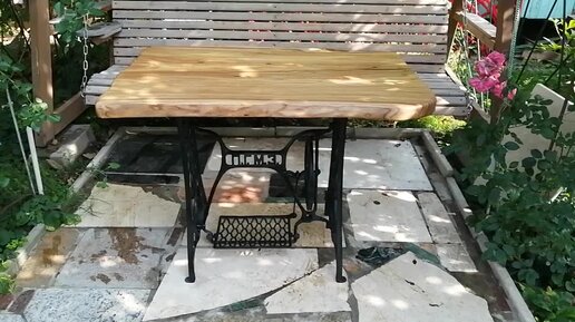 Стол из слэба карагача с подстольем из станины швейной машинки ПГМЗ или SINGER