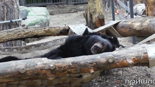 Медведица Челси прогулялась, приняла ванну, съела яблочки и легла отдохнуть!