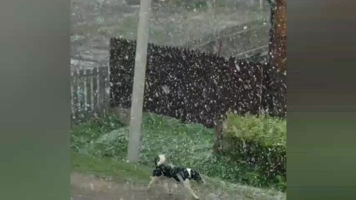 Субботняя майская зима. По-Саниному "буран". Что думает соседская собака - неизвестно...
