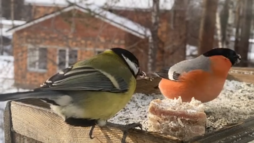 Красногрудые красавцы - СНЕГИРИ! Сибирь -опять метЁт!