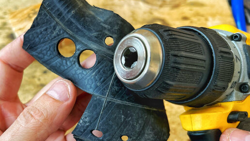 Как прорезать большое и ровное отверстие в резине, если патрон шуруповерта зажимает только до 10 мм
