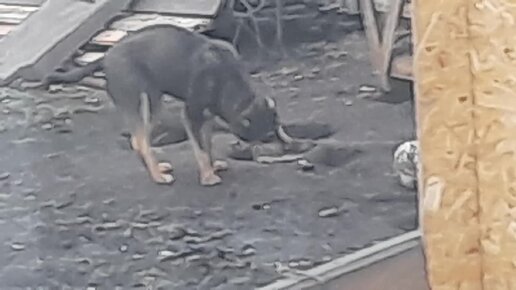 Посадили собаку на цепь , чтобы не сбежал , а он её пытается порвать .