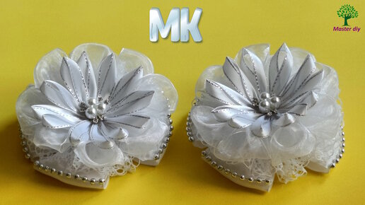 Очень просто и красиво Белый бантик цветы из репсовой атласной ленты и органзы \Master diy канзаши