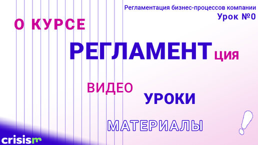 О курсе «Регламентация бизнес-процессов компании». Вводный урок