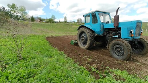 МТЗ-50 с фрезой обрабатываю землю, делаю грядки под лук,морковь и свеклу.