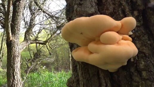 Трутовик серно жëлтый гриб который растëт на дереве, весенний сбор грибов в Крыму 2023