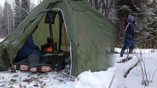 Зимний бушкрафт с палаткой и печкой. Видео без слов. АСМР под звуки природы.
