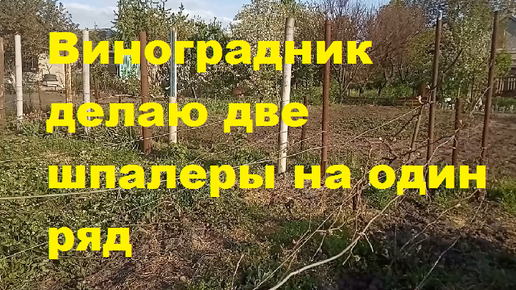 Виноградник две шпалеры на один ряд с подручных материалов.