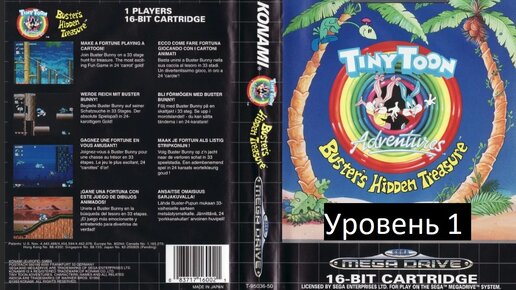 Ретро прохождение Tiny Toon Adventures (Тини Тун Адвенчерс) SEGA. Самый скучный ретро летсплей. Прохождение без комментариев. 1 уровень.