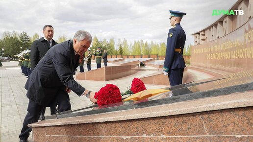 В канун Дня Победы Вячеслав Володин и Садыр Жапаров возложили цветы к Ржевскому мемориалу Советскому солдату