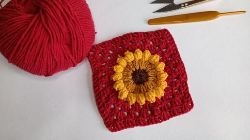 Мастер класс Подсолнух в бабушкином квадрате. Мотив крючком