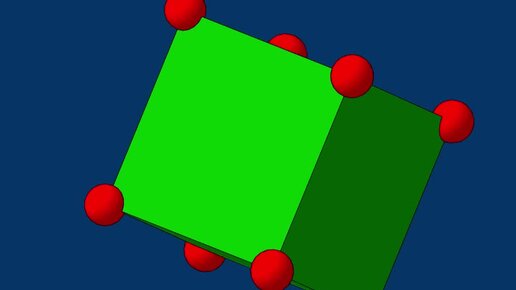 Футаж - зелёный куб с 8 красными шарами по углам. Футаж построен про помощи САПР Компас 3D