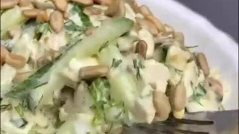 Салат "Обожайка" с курицей и огурцами. Рецепт в комментариях👉
