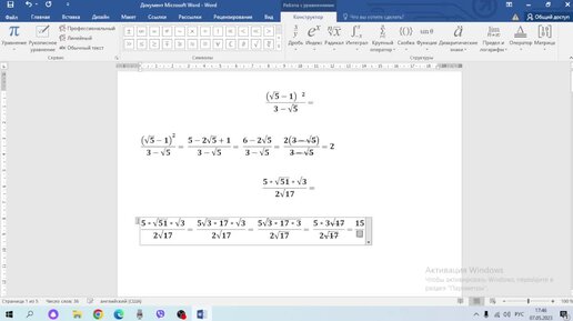 Дроби, степени, корни... Решаем примеры в Word. ОГЭ.