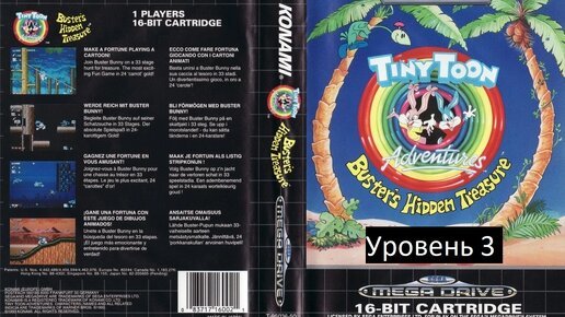 Ретро прохождение Tiny Toon Adventures (Тини Тун Адвенчерс) SEGA. Самый скучный ретро летсплей. Прохождение без комментариев. 3 уровень.