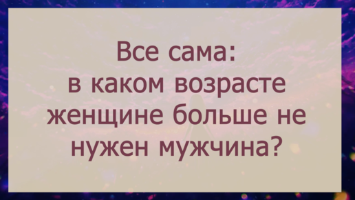Все сама: в каком возрасте женщине больше не нужен мужчина?