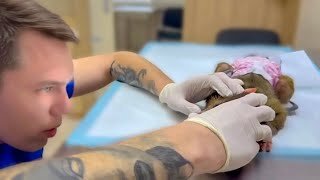 Помимо ‘’солнечности’’ у Мани букет родовых травм и скорее всего гидроцефалия головного мозга!
