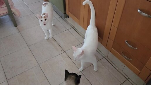 Утренний балаган и провокатор Пупся. Не любит, когда кто-то перед ним в очереди)))