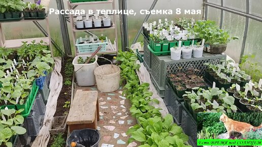 Рассада овощей и всходы цветов в теплице 8 мая. Тверская область, по ночам заморозки.
