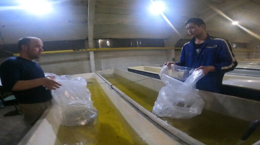 Выпускаем личинку Белуги и Ленки в наши ванны.