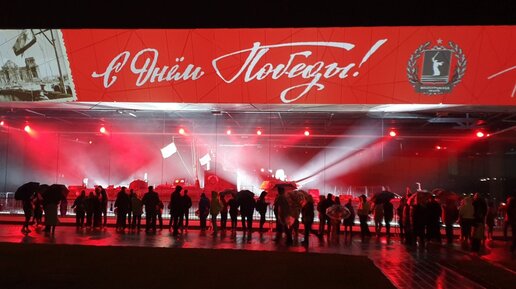 Лазерное шоу на бронекатере в Волгограде к 9 мая. Дождь и прохладная погода не испугали зрителей.