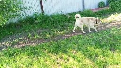 Спасённая собачка Дина, освоилась на арендуемом для наших подопечных участке.