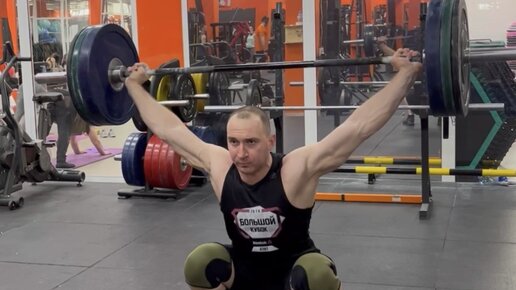 Тренировка дня. Приседания 147.5 кг. Фронт приседания 135 кг. Рывок 90 кг. Выпады 62.5 кг. Флажок. Баланс.