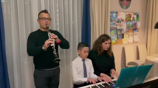 Иван с родителями исполняет "Славься, славься, ты Русь моя" М.И. Глинки.