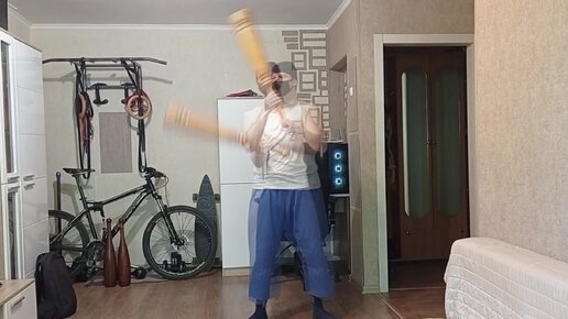 Далее: Подготовительные упражнения: махи палицей 3 кг с разворотом на 180 и 360 и перехватом в воздухе