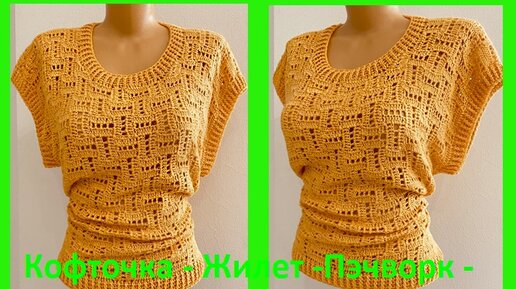 Кофточка - ЖИЛЕТ "Пэчворк " , вязание крючком по схеме