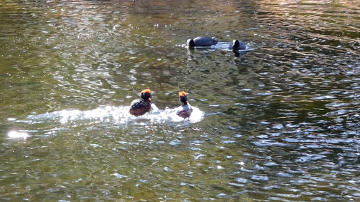 Спор за место для гнездования! Лысухи и красношейные поганки! Гатчинский парк.