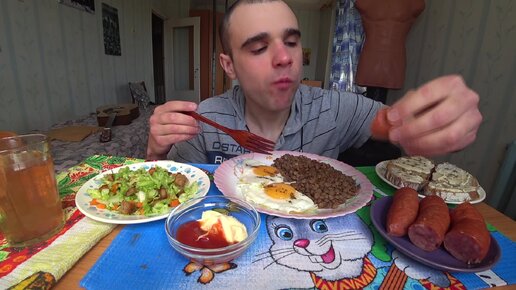 МУКБАНГ АСМР КОЛБАСА ПОЛУКОПЧЕНАЯ / ЯИЧНИЦА / ЧЕЧЕВИЦА / САЛАТ / ХЛЕБ С МАСЛОМ/ EATING ASMR Mukbang #514