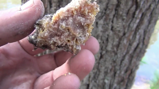 56 РЫБАЛКА ТАЙГА Кедровая живица смола ОГРОМНЫЕ КУСКИ и ПОТЕКИ на стволе дерева КЕДР. ТРУТОВИК от МУХ при вялении РЫБЫ. Личинка стрекозы