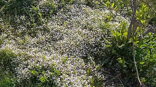 Вероника нитевидная создает сказочный ковер из мелких голубых цветов, зацветающими одними из первых каждой весной