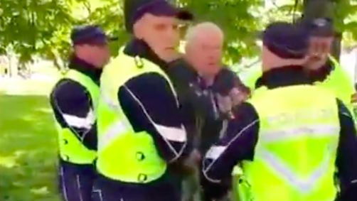 Сразу пять полицейских накинулись на пожилого мужчину, пришедшего к мемориалу в День Победы в Латвии
