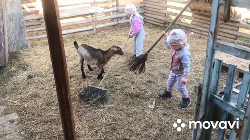 Уборка в козовнике. Внучки😄 помогают😄😄😄👍