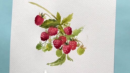 Рисую веточку с малиной акварелью