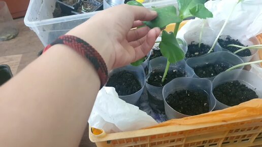 Вытянулась рассада кабачков и тыквы. Спасаю ситуацию. Кое -что не взошло.