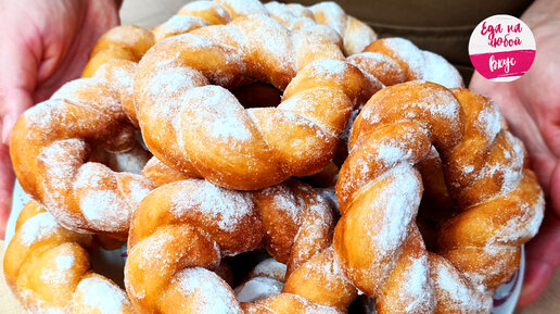 Чудо лёгкая выпечка (хоть жарь тесто, хоть пеки). Не булочки, а необычные воздушные плетенки Пончики. Волокнистое мягкое тесто "из ничего"