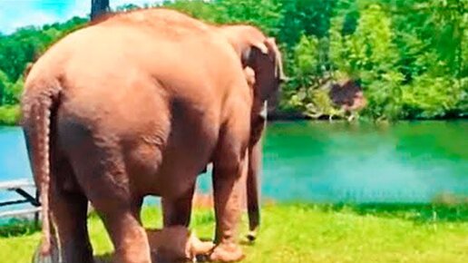 Слониха 3 недели провела на одном месте в ожидании своего необычного маленького друга!