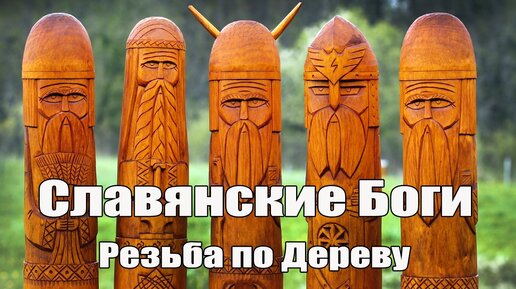 Кумиры Славянских Богов. Перун, Сварог, Чур, Дажьбог, Велес. Резьба по дереву, высота 50 см.
