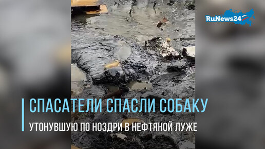 Спасатели спасли собаку, утонувшую по ноздри в нефтяной луже на территории Биробиджана