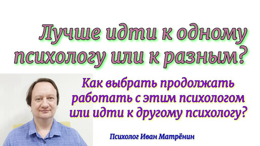 Лучше идти к одному психологу или к разным? Как выбрать продолжать работать с этим психологом или идти к другому психологу?