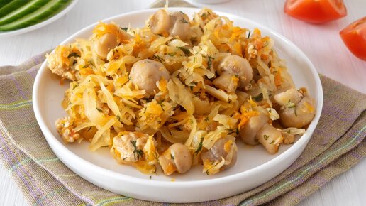 Простой и вкусный ужин (обед) из доступных продуктов: капуста, фарш и грибы