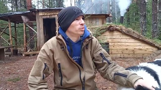 6с. Изба растёт! Делаю сруб топором и ножовкой. Лесная баня чистит душу. Мир, труд, май!