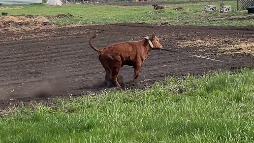 Впервые привязал бычка на верёвку. Марсику не привычно