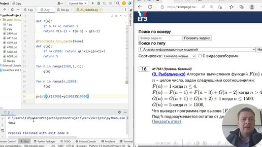 ЕГЭ, №16, информатика, про рекурсию. Уменьшаем искусственно глубину рекурсии в задаче № 7681, где очистка кэша не помогла. Решаем в Python