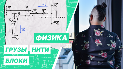 Два груза связанны нитями, перекинутыми через подвижный и неподвижный блоки